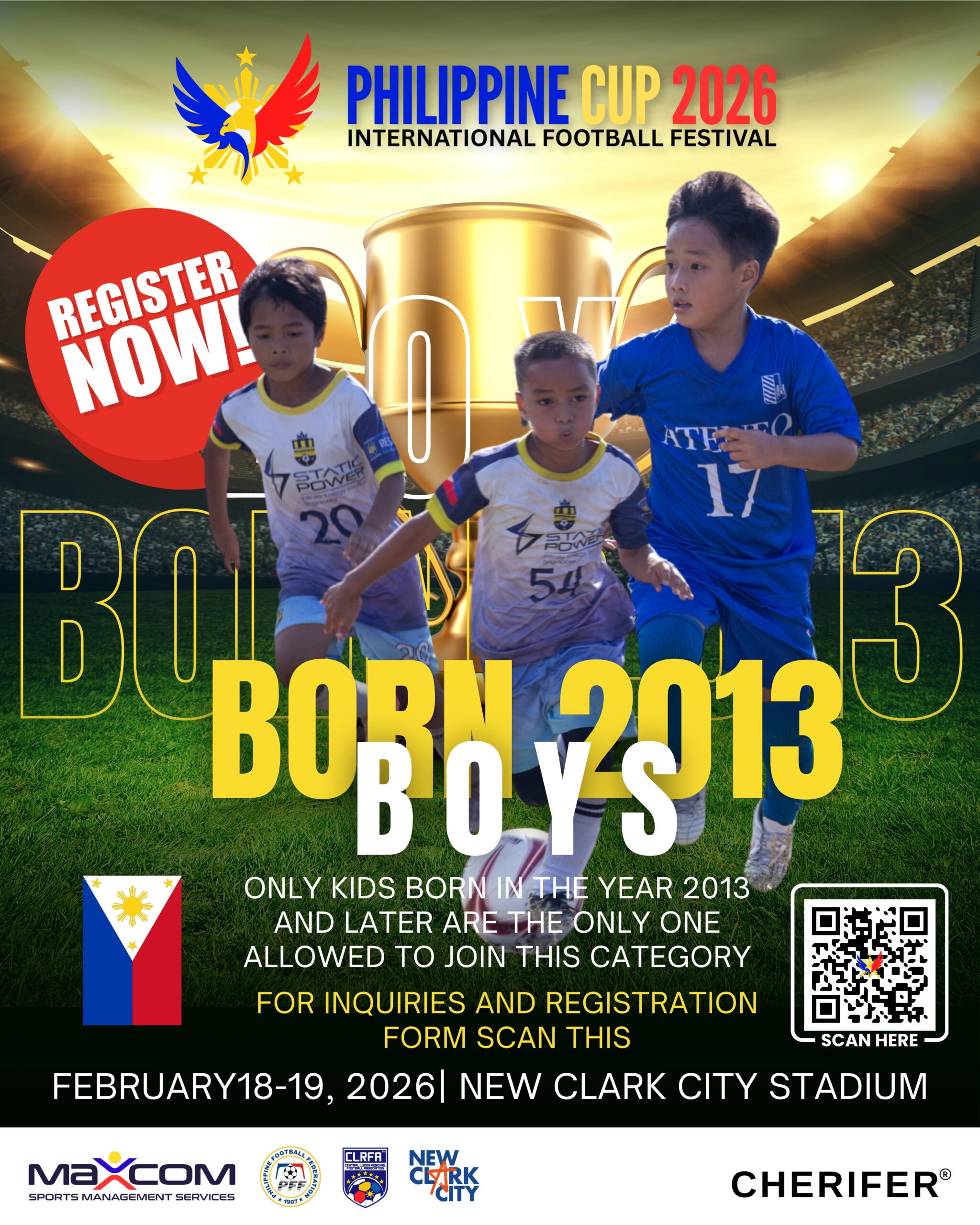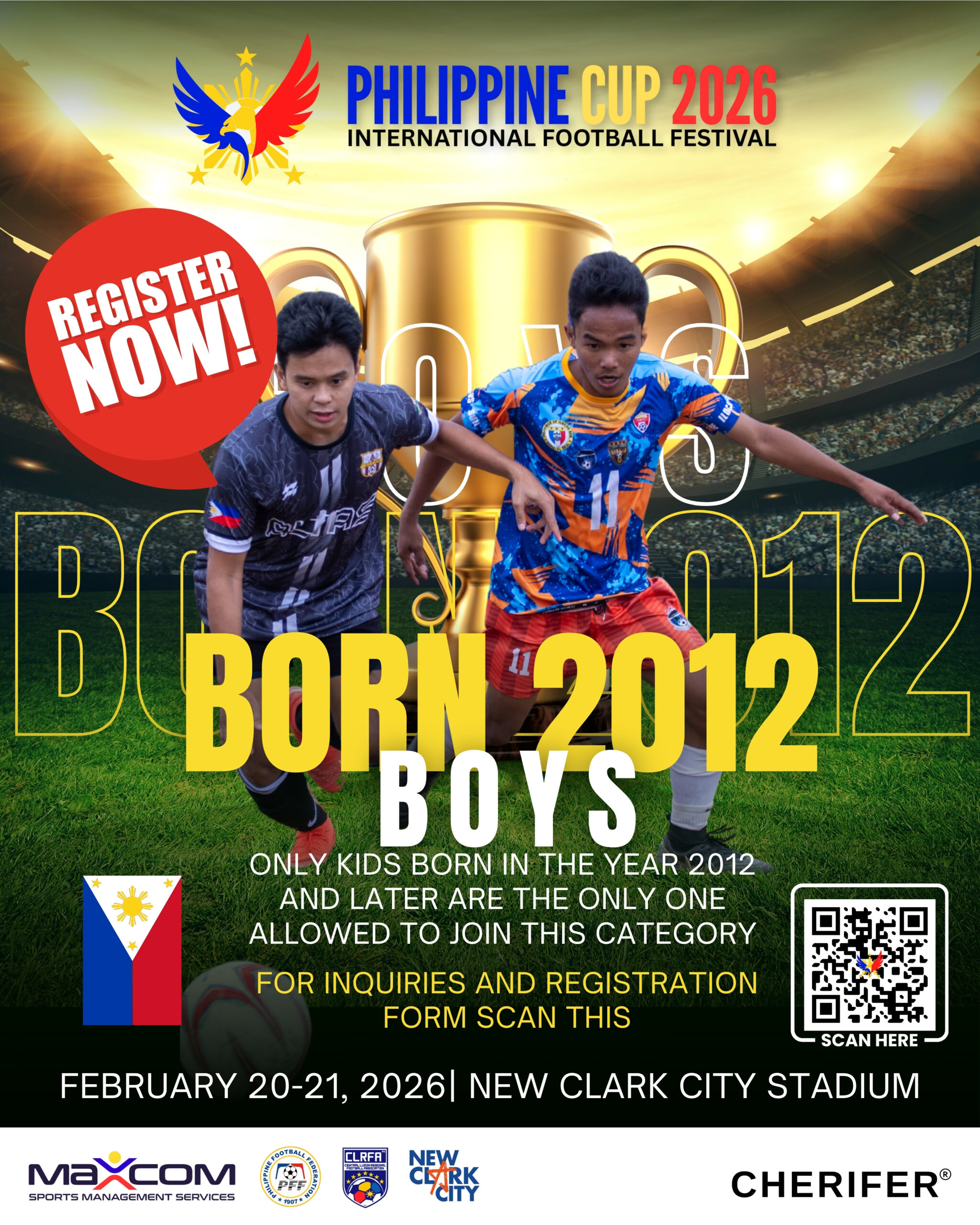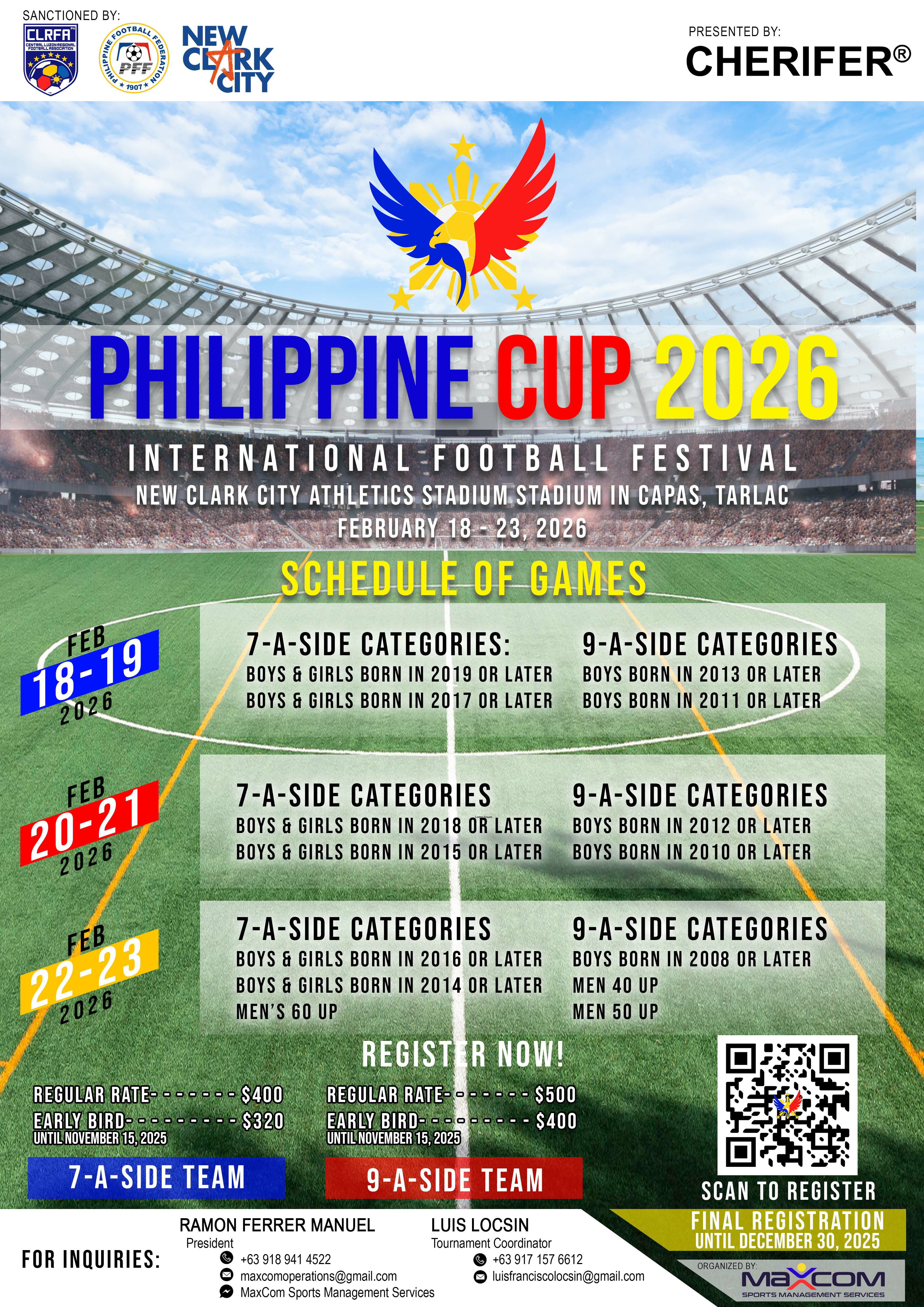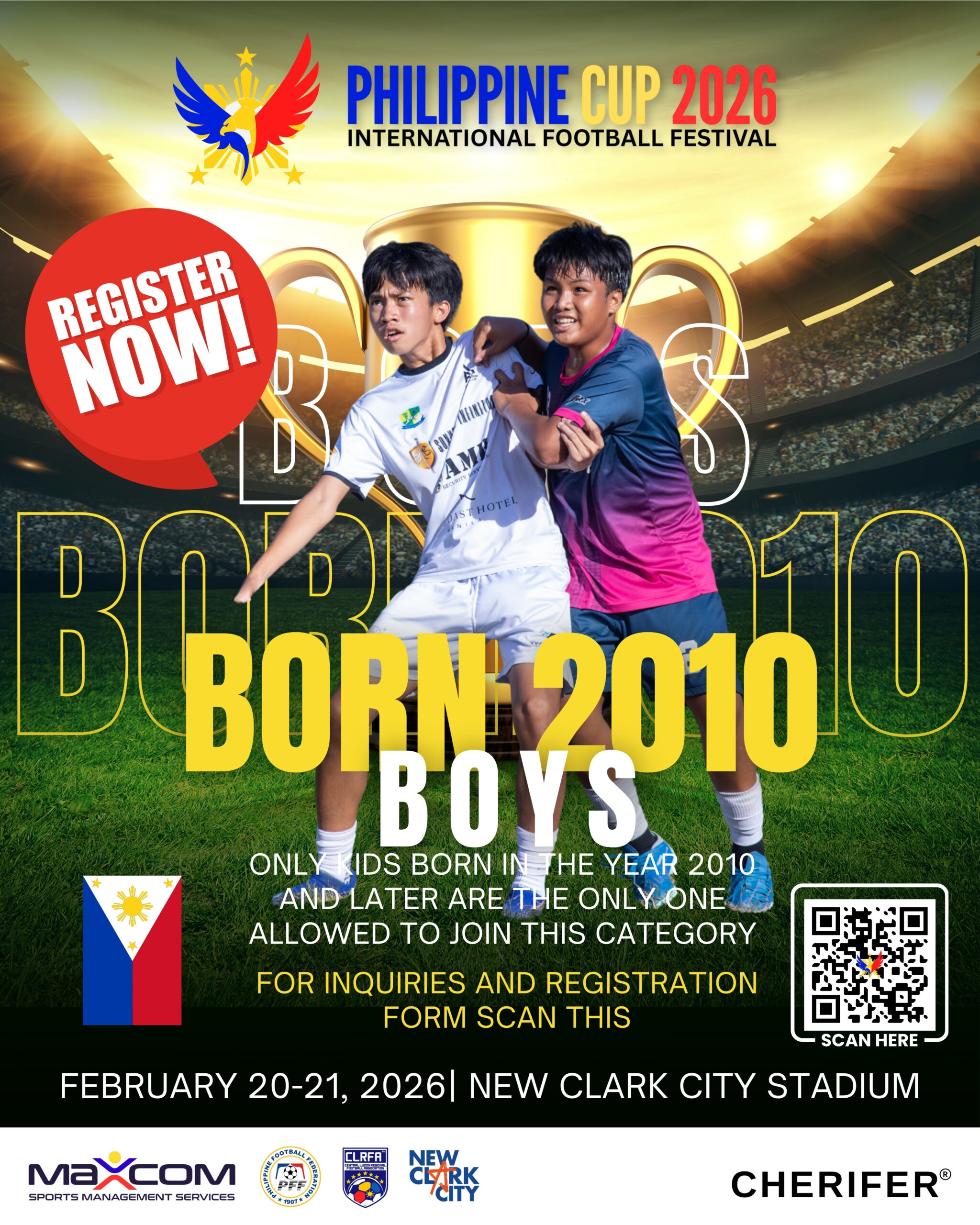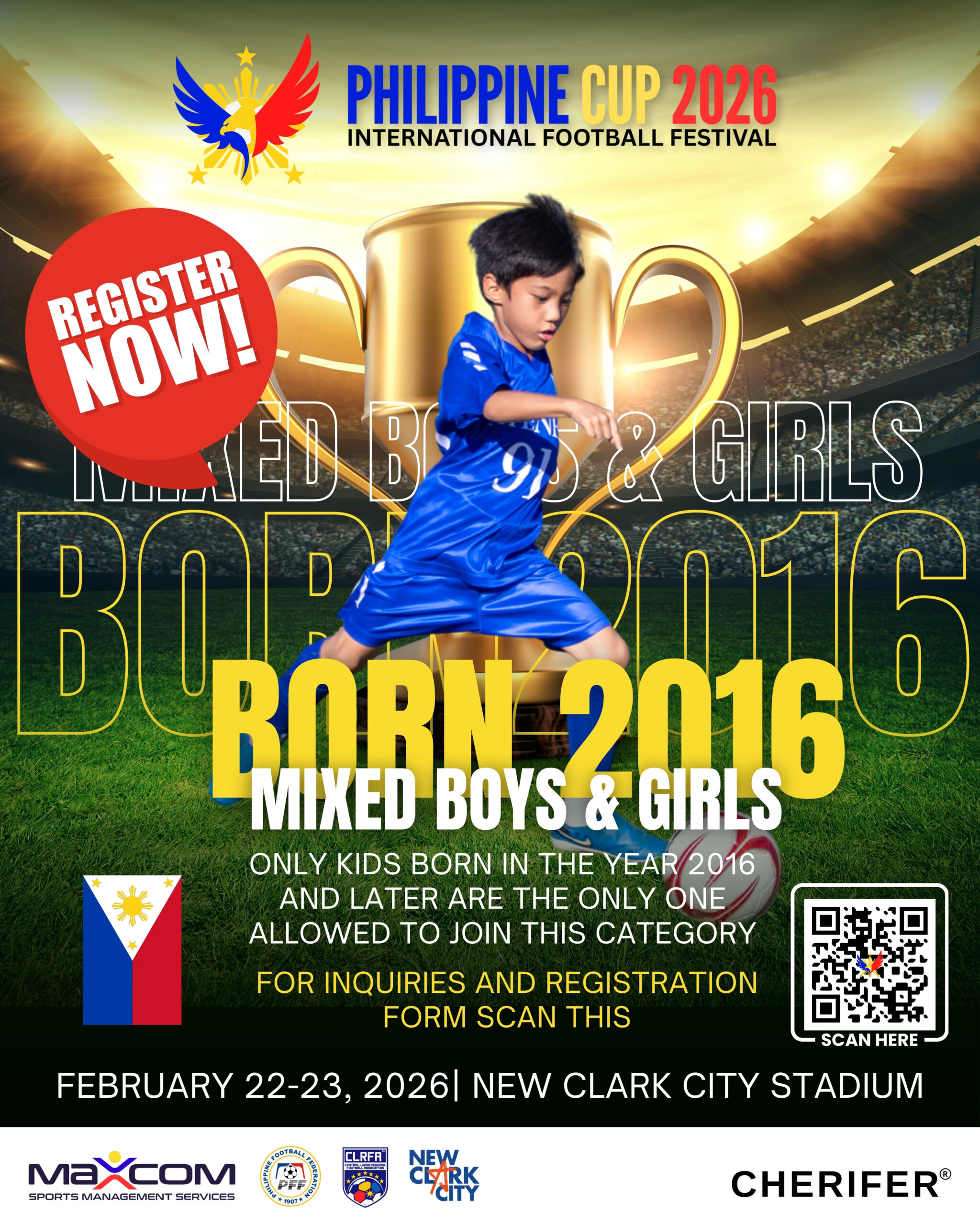 Home | Events | philippine cup 2026 Philippine Cup 2026 The world's beautiful game is coming to clark! To register visit Philcup.org